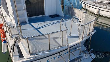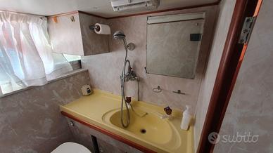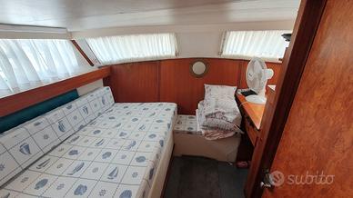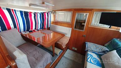 barca del 1977 cantiere J.C.L. LTD, lunghezza 10,90 metri, larghezza 3,44 metri; 2 motori perkins da 160 dislocante da FARE MANUTENZIONE; ottima come house boat, molto spaziosa e con tante finestre; composta da zona giorno con tavolo e ulteriore divano singolo, cucina a gas, lavello e frigo; 2 bagni con doccia e macinatore elettrico; 2 cabine matrimoniali con più armadi. Boiler per acqua calda e anche riscaldamento webasto per l'inverno. Guida interna ed esterna; cuscineria di prua; ampio pozzetto con tendalino, scaletta e doccia esterna; 2 passerelle. batte bandiera slovena, rina valida fino 2030. NON E' UN NATANTE. Vendo causa impegni lavorativi per inutilizzo e mancanza di tempo per restaurarla.