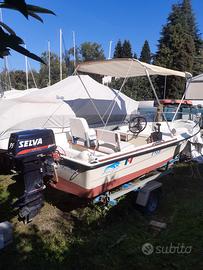Vendo barca mt 4,20 datata ma in buone condizioni, motore 35cv 2 tempi, doppio serbatoio con attacchi rapidi, tendalino e cuscineria, dotazioni di bordo, sedile aggiuntivo. Carrello non stradale, solo per alaggio. Ideale per prima esperienza, sia di svago che per pesca. La barca si trova sul lago Maggiore ad Arolo. Vendo per passaggio a barca più grande.