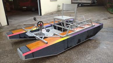vendo per inutilizzo, piccolo natante monoposto perfettamente autocostruito con propulsione a pedali. Il tutto assolutamente nuovo e realizzato con cura maniacale. Effettuate solo poche uscite di collaudo. Dimensioni cm 250x140, ma facilmente montabile e smontabile in pochi minuti, in modo da facilitare il trasporto e il rimessaggio. Ritiro in loco come visto e piacciuto. Vendo al miglior offerente