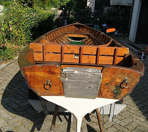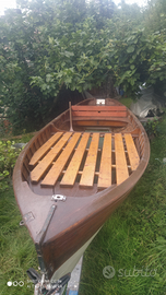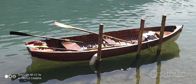 Vendo barca a remi in legno in ottime condizioni, completa di due coppie di remi, copri barca rigido e mezzo marinaio.