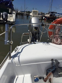 e mai usato, prese a mare 2022. Salpa ancora elettrico, doccetta con autoclave, segnavento, ecoscandaglio, pilota automatico Raymarine. Luci di via Ok, luce testa albero da controllare. Dotazioni entro 6 miglia, zattera autogonfiabile per 6 persone del 2022 con scadenza prima revisione entro 2025. Radio VHF fisso. Cucina con bombola gas, lavello con scarico a mare ma no collegamento serbatoio acqua. 4 posti letto ma comoda per 2. A novembre 2025 carena portata a zero più trattamento con resina epossidica, stucco, primer ed anti vegetativa. Cedo inoltre tender Bombard 2m in discrete condizioni e posto barca presso la Chiusa di Pontedoro Piombino.