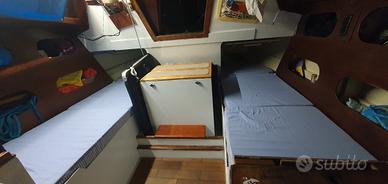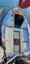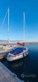 Sibma EM24 in multistrato di mogano, carena a doppio spigolo, riportata a legno opera viva, opera morta e coperta, due mani di resina epossidica 1010 bicomponente, fondo epossidico e due mani di smalto bicomponente tutto Cecchi. Randa steccata con 2 mani di terzaroli, fiocco su strallo cavo (nuova banda UV) e avvolgifiocco, randa e genoa originali di rispetto. Timone a barra. Motore fuoribordo mercury 5cv, tagliando/girante marzo 2026. Ecoscandaglio e GPS Garmin, bussola. VHF portatile. Letto doppio di prua e due posti in quadrato. Cucina a due fuochi a gas, lavello, frigo 12v/220v, serbatoio acqua 40lt, doccetta in pozzetto. WC pompa manuale nuova jabsco. Luci interne a LED, caricabatteria e pannello solare 50W. Presa 220 da banchina, prese usb. Lunghezza 7,2mt, larghezza 2.1mt, chiglia in ghisa 1,4mt. Barca facile da portare, adatta anche per imparare. Visibile MAT Piombino. Vendo per passaggio a categoria superiore. Valuto anche permuta con Sun Odyssey o Oceanis 3 cabine. Prezzo trattabile per vendita veloce.