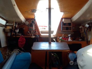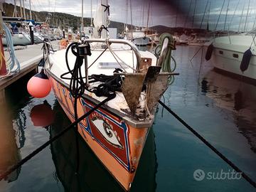 Lunghezza 7 MT. Larghezza 2.50.Doppia cabina a poppa, deriva mobile integrale, fornita di genoa, randa, due fiocchi. Cuscinerie originali. Finestrature cambiate 2023, strallo e sartiame 2021.