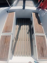 Timone a barra, randa con lazy bag, lazy jacks e carrello, genoa avvolgibile, autopilota, motore nanni 15hp, serbatoio inox 45 litri, elica tre pale orientabili, due batterie, vhf, ancora delta con salpa ancora e gps cartografico.