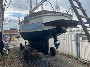 Barchetta in acciaio anni 70 , lunghezza 8 mt , motore fuoribordo 9,9 cv Yamaha anno 2009 con avviamento elettrico e comandi in consolle , wc chimico , cucina , giro di vele in buono stato .