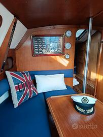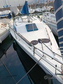 vendo barca vela LUNGA M.7,57 LARGA M,278 eseguito tagliando motore cambiato olio e filtri e girante revisionati gli winch sartiame cambiato anno scorso vele perfette lazy jack impianto elettrico nuovo luci navigazione notturna dotata nasa log. quattro posti letto con posto barca fino a fine anno a Mandello del Lario. Motore diesel entrobordo 12 cv. facile da gestire anche da soli pronta per divertimento assicurato