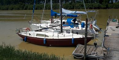 motore sostituito di recente MD2 volvo penta, raffreddamento con radiatore, 3 cilindri 20hp, 3 anni circa, 300 ore di moto, sempre tagliandato, elica a tre pale, velocità di crociera 5,5 nodi a 2.200 giri. Capacità serbatoio: 40 litri.