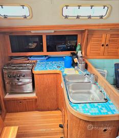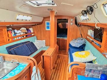 Vendesi Barca a vela B&B 36. Cantiere EMISUL del 2004. Tripala Yanmar 2023, lunghezza 10,67 mt; larghezza 3,40 mt, pescaggio 1,8 mt; Motore YANMAR revisionato a nuovo 2023, serbatoio acqua 400lt e serbatoio gasolio 100lt. Pannelli solari. Autopilota Raymarine ST 4000 Plus, Salpaancora, GPS, Rollafiocco, Winch ponte nuovi. Timone a ruota. 2 cabine e 7 posti letto 1 bagno. Dotato di cucina con fuochi e forno, frigo, boiler, Tender. Inoltre: Winch ponte nuovi; Opera viva portata a gelcoat e trattata 2025; Tappezzeria esterna, Bimini, Sprayhood, copriranda e copritimone rifatta; WC elettrico nuovo 2025 Ottimo stato, visibile a Procida (Lega Navale)