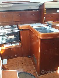 3 cabine doppie + 2 letti singoli in dinette, 1 bagno, angolo carteggio, piano cottura, forno, ampio frigorifero a pozzetto, lavabo 2 vasche, scaldabagno motore ed elettrico, 2 serbatoi acqua da 150 l. ognuno.