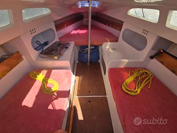 Prezzo ribassato per cabinato a vela, Nytec 23. Barca molto marina, divertente e sicura, solo un metro di pescaggio, buono stato, pronta a navigare, timone a barra + stick e trasto della randa con rimando vicino al timoniere.