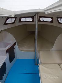 Vendesi cabinato 4 posti cuccetta. Lunghezza 680 cm. Refitting completo nel 2025 ,attualmente ancora in cantiere. Riverniciato esternamente ed internamente , rifatto l'impianto elettrico ed illuminazione. Completo di randa, genoa e fiocco. Motore fuori bordo 4t da 6 HP. Finestrini e passa uomo di prua nuovi . Imbottitura interna completamente nuova. Rifatti tutti gli scarichi a mare con passa scafi inox. Efficientate le manovre di coperta con stopper anziché gallocce. Completa di motore fuoribordo. Disponibile per la visione in cantiere.
