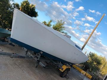 Vendo barca a vela cadei da 6 metri Con cuccette e posti letto. La barca è stata acquistata 2 anni fa e smontata per eseguire dei lavori che per motivi di tempo non sono riuscito piu a terminare. Al momento la si può vedere smontata di albero ed accessori, ma è completa di tutto… cuscineria nuova e regalo diversi set di vele. La vendo completa di carrello omologato e motore mercury 4 tempi. Solo il valore del carrello e del motore è di 2000€. Ovviamente il motore è provvisto di apposito libretto.
