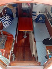 contest 27 rinomato cantiere olandese Conyplex lunghezza 8,25 larghezza 2,25 altezza in dinette 1,85 materiale dello scafo : vetroresina omologata 5 posti è una ottima barca da crociera d altura degli anni 60 progettista U Van Essen leggendario progettista del Flying ducthman Laura è il nome delle barca è stata sempre amata dagli armatori precedenti io e spero che incontri un altro armatore che la ami con i suoi precendenti molti i lavori eseguiti negli anni motore ruggerini entrobordo 8cv appena rifatto ancora in rodaggio i cuoi consumi sono irrisori sarti alte 2022 prese a mare sostituite bel 2022 serbatoio acqua 100l sostituto giugno 2025 autoclave sostituito gennaio 2026 fornello due fuochi 2022 batterie servizi 2 , 100 ampere ottobre 2025 impianto fotovoltaico pannello fisso sul tambuccio 80 watt più uno da 100 rimovibile ancora danfort 8 kg 40 metri di catena da sei copri tappezzeria 2022 vele genoa fiocco trinchetta tomentina Spynnaker la barca si trova nella baia di case vecchie a Miseno la uso regolarmente sono a vostra disposizione per poterla vedere preferisco essere contattato su WhatsApp prima tramite messaggio 3395813112