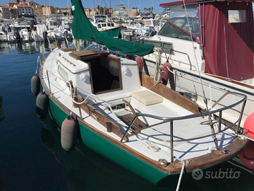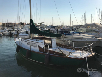 Barca a vela classica a chiglia oceanica, modello Rhodes Ranger 29. Designer Philip Rhodes, cantiere Sailboats Crespellano BO (dal 1971 Cantieri del Pardo), anno di costruzione 1969, varo 1971, Lunghezza Ft 8,69 m, Baglio Max. 2,44 m, altezza interna dinette 175 cm. Motore entrobordo Nanni Diesel 2.60HE 15cv sbarcato e revisionato nel 2020; pompa dell'acqua e cinghia di trasmissione sostituiti nel 2024. Trasmissione in linea d'asse e premistoppa in gomma Volvo Penta sostituito nel 2020. Serbatoio h2o 200L con autoclave del 2023. Scaletta e dotazioni di sicurezza agosto 2024. Ultimo carenaggio luglio 2024.
