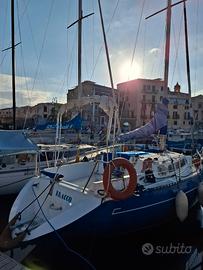 Vendo imbarcazione a vela "Classis Segugio 8.5" - 10 metri, con spiaggetta di poppa in vetroresina in aggiunta al modello originario per una maggiore vivibilità. Camera armatore a prua con bagno passante, lavandino e doccia, wc nautico elettrico. Dinette 3 posti letto con tavolo ribaltabile. Posto letto a poppa per un totale di 6 posti letto complessivi. Impianto idrico nuovo, inverter 220W nuovo. Ampio pozzetto con cuscineria nuova sia interna che esterna. Velatura completa, Randa, Genoa, Storm e Gennaker. Motore Yanmar 30cv montato in sostituzione del precedente 12cv, sovradimensionato per una maggiore sicurezza in condizioni estreme. Imbarcazione totalmente riverniciata esternamente con una stupenda livrea blu.