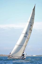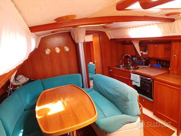 Progetto Vallicelli - Anno di costruzione 2000. Scafo bianco - Lunghezza fuori tutto mt. 12,90 Lunghezza al galleggiamento 10,90 Larghezza Max mt. 4,02 Pescaggio mt. 2,20 Coperta in teak 6 winch Harken Avvolgifiocco Harken. 2 genoa, randa, gennaker e code zero Carabottino in teak nuovo 2025 Cuscineria esterna Copri winch + copritimone Carena portata a gelcoat e trattata con isolate epossidico nel 2021. Interni in ciliegio americano. 3 Cabine. Posti letto n° 6 + 2 di emergenza in quadrato. 2 bagni. Armadio Cerate nel bagno di prua. Cala vele accessibile dalla coperta e dall'interno. Cuscineria interna nuova, mai usata. MOTORE: Lombardini 45 hp - sbarcato e portato a 0 ore nel 2023 - manutenzionato ogni anno in maggio. 2 Serbatoi gasolio totale l.190. Linea d'asse nuova 2025 con elica JProp a pale orientabile (usata per regate) + elica a pale fisse (per crociera) DOTAZIONI E STRUMENTI: Strumentazione di navigazione plotter Raymarine Axiom 9’, Log + Eco Raymarine ST60, display tridata Raymarine ST60, autopilota Raymarine P70, interfacciato con plotter, strumento del vento, AIS 700 Raymarine, EPIRB, VHF Raymarine 218E + VHF portatile Cobra 350, Cartografia intero Mediterraneo. Zattera Arimar per 10 persone in contenitore flessibile - revisionata 2024. Salpa-ancora Quick da 1000W con 50 m di catena calibrata da 8mm. Con ancora BRUCE 20kg. Ancora di rispetto Delta 20Kg Scaletta bagno a scomparsa a poppa. Passerella di poppa ripiegabile. IMPIANTO ELETTRICO: 2 pacchetti x 2 batterie 100 Ah. Barca molto amata e ben tenuta, con manutenzione costante e molte migliorie. Attualmente fuori acqua in cantiere per rifacimento comenti coperta teak e paiolato dinette, con possibilita di visionare facilmente le condizioni dello scafo. Scheda tecnica e altre foto su richiesta