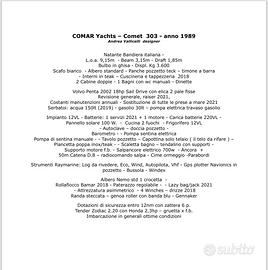 Comet 303 in ottime condizione munito di tender con motore fuoribordo. Attualmente ormeggiato a Punta Ala