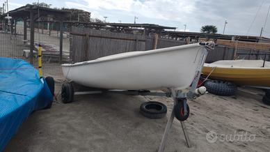 Vendo barca a vela lunga 4,20 mt. in buone condizioni, completa di tutto, vele, albero, deriva, telo di copertura e carrello per spostamenti manuali. Possibilità di mettere un motore fuoribordo di servizio.
