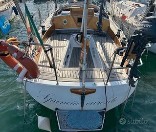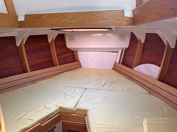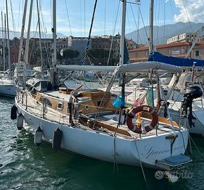 BARCA A VELA CUSTOM IN LEGNO “CLASSIC 10” ANNO 2007 DI MT. 10. largh 320 pescaggio 150 cm Dislocamento 5 ton Sup velica 70 mq PEZZO UNICO CON COSTRUZIONE MONOLITICA STRIP PLANKING-LAMELLARE INCROCIATO DI MOGANO E RESINA EPOSSIDICA, NON RICHIEDE ALCUNA MANUTENZIONE ALLO SCAFO E NON HA PROBLEMI DI OSMOSI DISEGNATA DAL FAMOSO ARCHITETTO NAVALE RODOLFO FOSCHI PONTE IN TECK ANNO DI COSTRUZIONE 2007 – REALIZZATA PRESSO I CANTIERI EURO SAILER DI VIAREGGIO ESENTE DA IMMATRICOLAZIONE E DUNQUE CON COSTI MOLTO LIMITATI DI ASSICURAZIONE E GESTIONE (150 € ANNUI CIRCA) ESENTE DA PATENTE NAUTICA OMOLOGAZIONE CE NUM 0407 – CERTIFICAZIONE RINA CLASSE B0 – A+A – DISPONIBILE MANUALE DEL PROPRIETARIO E DOCUMENTAZIONE COMPLETA N° 2 CABINE + DINETTE CON LETTO MATRIMONIALE + COMODISSIMO GAVONE A POPPA MOLTO GRANDE AMPI GAVONI INTERNI SOTTO LE CUCCETTE E LATO SCAFO TAVOLO SMONTABILE IN TEAK X IL POZZETTO WC CON POMPA ELETTRICA SERBATOIO GASOLIO 70LT SERBATOIO ACQUA DOLCE 220LT SERBATOIO ACQUE NERE 40 LT CUCINA BASCULANTE CON FORNO FRIGO A POZZETTO PERFETTAMENTE FUNZIONANTE DOPPIO BANK BATTERIE PER I SERVIZI (PERMETTE DI RESTARE ORMEGGIATI IN RADA PER VARI GIORNI) + BATTERIA X MOTORE MOTORE VOLVO PENTA 20 CV NUOVO INSTALLATO NEL 2014 – TAGLIANDO MOTORE APPENA FATTO VELE NUOVE IN DACRON ACQUISTATE NEL 2023 PRESSO VELERIA ZAOLI. SUPERFICIE VELICA 70M2, RANDA CON LAZY BAG. FIOCCO E GRANDE GENOA ARMATO SU BOMPRESSO, CON POSSIBILITà DI ARMARE UN GENNAKER. TIMONE A BARRA CON COMODISSIMO PILOTA AUTOMATICO SIMRAD ATTREZZATA CON MATERIALE DI PRIMA QUALITA (WINCH HARKEN, STOPPER SPINLOCK, FURLER SELDEN, OBLO E PASSI UOMO LEWMAR) E CON OTTIMA CAPACITA VELICA BARCA UTILIZZATA UNICAMENTE AD USO PRIVATO PER NAVIGAZIONI NEL MEDITERRANEO (CORSICA – FRANCIA – LIGURIA) – MAI AFFITTATA O ALTRO REVISIONATA ANNUALMENTE PRESSO IL CANTIERE PERMARE DI SANREMO E SEMPRE TENUTA IN PERFETTO STATO PER ALTRE INFO CONTATTATEMI