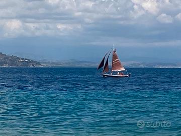 Vendesi "brezza di mare" piccolo cutter aurico mt. 6 (7,50 mt f.t). scafo in vetroresina . Albero, boma, picco e bompresso in legno. motore entrobordo Yanmar 1GM10 diesel 10 hp . Rimessaggio invernale in cantiere al chiuso. Visibile in acqua nei pressi di Soverato. Vendo per cronica chiusura di porti locali. Su velanet esiste un servizio dettagliato sulla barca dal titolo "Vela aurica e piccole barche classiche".