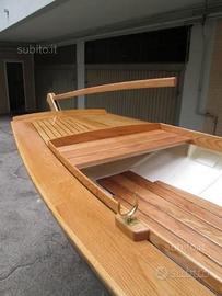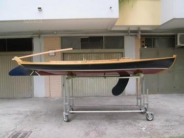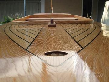 Imbarcazione a vela americana modello Melonseed Skiff. Esemplare unico in Europa. Ricostruzione storica realizzata da maestro d'ascia del museo marittimo norvegese effettuata sulla base di piano di costruzione datato 1888. Anno di costruzione 2015. Deck, costole, chiglia, prua, specchio di poppa in Rovere bianco Americano. Fasciame in Pino Nordico. Armo originale catboat con vela aurica. Possibile armo anche con vela Marconi. (Le vele non sono incluse) La deriva completamente estraibile permette il varo/alaggio direttamente dalla spiaggia. Leggera e facilmente sollevabile puó essere riposta su ripiano in garage. Disponibili su richiesta articoli e pubblicazioni specialistiche