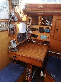 In vendita barca a vela 34 piedi, immatricolata natante, in ottimo stato, ideale per regate e navigazione da diporto. Vincitrice del trofeo Formenton a Porto Rafael. Caratteristiche tecniche Imbarcazione costruita, per maggiore resistenza, con scafo e bulbo in stampo unico in kevlar, timone in carbonio Lunghezza: 10,3m Larghezza: 3,6m Pescaggio: 1,8m Dislocamento: 5.500Kg Motore: Volvo Penta 40 cavalli diesel, 3 cilindri, circa 200 ore di utilizzo Serbatoio: 100 litri Batterie: 2 batterie da 80 Aph per i servizi e 2 da 100 Aph per l'avvio del motore. Impianto elettrico: 220V con presa in banchina o rete a 12V Strumentazione: ecoscandaglio, pilota automatico e strumentazione del vento Coperta 6 wintch Barbarossa, 2 per le drizze, 4 per le scotte. Tutti i comandi rimandati in pozzetto Albero 2 crocette, avvolgi fiocco, 2 tangoni Centralina idraulica per il paterazzo, per il vang e stralletto Elica 3 pale + 1 elica di riserva pale abbattibili Timone a ruota Cockpit e tendalino Spinnaker, Tallboy, Genoa leggero, Genoa medio, Tormentina e Randa. Salpa ancore elettrico con 50m di catena. Ancora 20Kg. Interni Cabina privata di prua 2 posti Dinette a ferro di cavallo con tavolo abbassabile per ottenere 2 posti letto più letto opposto al tavolo Posto letto di poppa Zona cucina con frigorifero, ghiacciaia, lavabo a 2 vasche, cucina con forno basculante Tavola da carteggio con strumentazione e pannelli Bagno con doccia, lavabo e WC. Boiler 220V per acqua calda DISPONIBILE SUBENTRO POSTO BARCA A PALAU