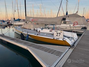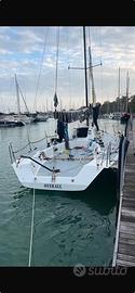 Imbarcazione da regata cantiere Zuanelli modello "Over 33", progetto Starkel , solo 5 esemplari al mondo, costruzione in Kevlar, Motore entrobordo diesel Volvo 10 hp. Albero Cariboni, Boma in carbonio Gold Service, Imbarcazione sanissima, plurivittoriosa, velocissima. Non esiste nulla di così performante e divertente a questa cifra. Numerose vele e Gennaker con bompresso in carbonio retrattile. Lunghezza 9,96 mt, pescaggio 2,50 mt. Vendo a malincuore per imminente realizzo di un nuovo progetto.