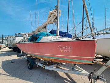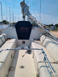 Dehler 18 anno 1994 - Ideale per famiglie e campeggio nautico, portata 5 persone, quattro posti letto comodi, ampi gavoni. Deriva a baionetta con argano, doppio timone, genoa + randa steccata (da sostituire), predisposizione fiocco autovirante, bompresso retrattile, impianto elettrico con batteria e pannello solare 100W, code zero + gennaker, carrello stradale ( da revisionare), wc chimico, capottina, perfettamente attrezzata. Motore Mercury 4Cv gambo lungo anno 2012 (usato poco) sempre tagliandato quando utilizzato
