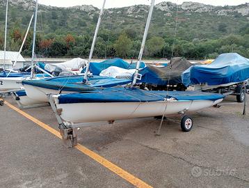 Barca a vela deriva 470 olimpico Nautivela tenuta benissimo, attrezzatura perfetta con vele carrello alaggio e telone. Visibile a Marina piccola