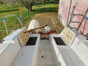 Barca a vela usata mt.6, 70 x2,40 è un cabinato con deriva mobile, Vele: randa con copriranda,lazy jack, 2 fiocchi, 2 genoa, drizze e cime varie, tangone. Bussola, luci di via in testa albero con luce di fonda, batteria nuova,parabordi, ancora e cima 30 mt. Interno con cuccette,lavello,gavoni, pompa di sentina,wc nautico. -Ampio pozzetto con 2 sportelli di accesso, a poppa plancetta,scaletta,supporto motore f.b. con motore mercury 4cv. Vendesi vista e piaciuta, prezzo ribassato € 3.490 Per info wathsap 335 8051256