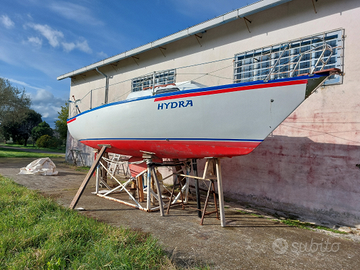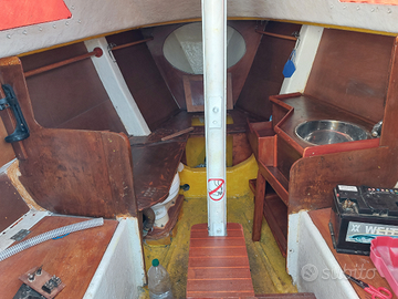 Barca a vela usata mt.6, 70 x2,40 è un cabinato con deriva mobile, Vele: randa con copriranda,lazy jack, 2 fiocchi, 2 genoa, drizze e cime varie, tangone. Bussola, luci di via in testa albero con luce di fonda, batteria nuova,parabordi, ancora e cima 30 mt. Interno con cuccette,lavello,gavoni, pompa di sentina,wc nautico. -Ampio pozzetto con 2 sportelli di accesso, a poppa plancetta,scaletta,supporto motore f.b. con motore mercury 4cv. Vendesi vista e piaciuta, prezzo ribassato ? 3.280 Per info wathsap 335 8051256