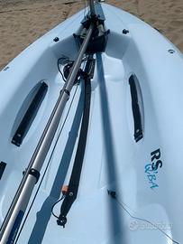 Vendo deriva Rs Qba, con randa in dacron standard da 5,6mq e fiocco da 1,2mc in ottime condizioni . Barca molto stabile e semplice ideale per principianti e bambini. pesa 58kg ed è lunga 3,53 m. Ha l'albero divisibile in 2 parti ; Pratica da trasportare sul tetto dell'auto . La randa si arma con apposita drizza, ed è possibile anche navigare con randa ridotta ( sono presenti le brancarelle). Oltre alla randa standard è disponibile la randa PRO in mylar da 7,1 mq steccata. A completamento viene fornito carrello per varo e alaggio smontabile, e telo copriscafo ( funzionale ma con un paio di toppe).