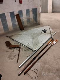 Dinghy della vergaplast mod libellulaa vela e motore inaffondabile peso 45 kg lunghezza 2.7 metri larghezza 1.25 unica e introvabile per chi si avvicina alla vela o per pescatori , con carrello alaggio artigianale