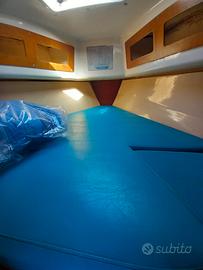 Vele nuove 2023; motore volvo 9CV entrobordo; avvolgifiocco; easy bag; easy jack; bimini con struttura inox; tangone; cuscineria nuova; carica batterie e ripartitore di carica; dotazioni di sicurezza.. ottobre 2024: sbarcato motore per sabbiatura e verniciatura, verifica e pulizia scambiatore di calore, sostituzione cuffia tenuta asse elica, verifica asse. Pulizia vano motore, verifiche generali.