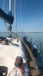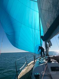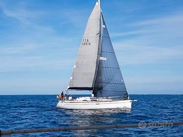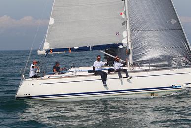 Dufour 34 - Anniversary Edition n. velico ITA14914 Birikò Anno costruzione: 2.005. Bandiera Polacca. Certificato ORC International 2025 Birikò ha appena partecipato al mondiale ORC Double Handed: mancò la fortuna non il valore. LFT: 10,28 (più delfiniera) baglio max: 3,64; pescaggio: 1,90 Timone a ruota. Chiglia: a pinna. motore: Volvo Penta MD 2020D 14KW / 10 cv. Saildrive Serbatoio diesel 90 lt. serbatoi acqua n. 2 per 285 lt. Cabine: due matrimoniali (quella di poppa piccola); due cuccette in dinette; tavolo pranzo ripiegabile. Tendalino in acciaio. Pannello fotovoltaico rimovibile flessibile 80W 12V flex80 Qookka Boma in carbonio. Tangone in carbonio. Delfiniera in carbonio, controventata in dynema. Elettronica: Autopilota con telecomando, connesso a GPS, Garmin GPS Map 722xS, Ais Raymarine Ais700; Garmin GNX WIND, Garmin GMI. Predisposizione n. 3Monitor ad Albero (presenti ma da sostituire) Vele da crociera (oltre ad originali Elvstrom in dacron, usate forse due volte) : -Randa (stazzata ORC): Eurosail mq. 32,50 - 2 mani di terzaroli - 4 stecche full - base libera - dyneema leech line - nr. velici - sacco - Genova: - da crociera rollabile, Performance Cruise in membrana LoadPath con fili in pentex con doppia protezione taffeta . avvolgibile 105% mq. 25 con stecche verticali - banda di protezione UV su balumina e base in tessuto Weathermax colore grigio chiaro -sacco. - da regata (non installato Tuff Luf): genova 137,50% GP Race in membrana LoadPath con fili in Technora costruzione film on film (range fino a 12kn). - n. tre fiocchi peso variabile per range > 14kn sino ad olimpico (stazzati ORC) - Gennaker: Eurosail runner nylon REVX45 0,75, 87,510 mq. con calza (stazzato ORC). - Code Zero Eurosail; n. 1 Gennaker (più piccolo c.ca 60 mq.) e n. 2 Spinnaker, sempre piccoli. Randa di cappa e tormentina in nylon arancione