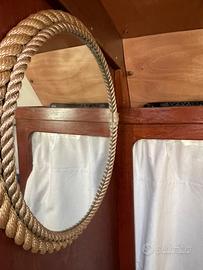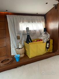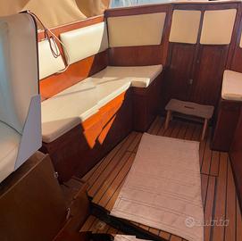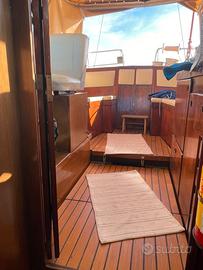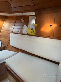 Gli interni ad altezza d'uomo sono rivestiti in legno Okumè Marino, Iroko e teak, le paratie sono tutte coibentate per un isolamento termico fantastico, barca calda d'inverno e fresca d'estate, divani e 3 cabine letto + cabina bagno con WC elettrico.