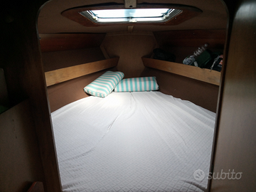 Barca veloce e comoda anno 1978, lung. fuori tutto 7,8m e larg. 2,7m equipaggiata con motore entrobordo linea d'asse Yanmar 13 CV sempre tagliandato e perfettamente funzionante, due serbatoi da 25l. Albero maggiorato a due crocette. Controllo sartie, strallo e paterazzo settembre 2024. Randa con lazy bag e Genoa un ottime condizioni, spinnaker e tangone, vang rigido.
