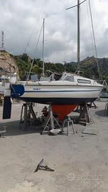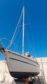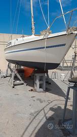 Barca a vela Metri 7,30 - Edel 4 Con tuga alzabile, pozzetto centrale per invaso, motore fuori bordo nuovo con 15 ore di navigazione, chiglia retraibile, 5 vele, batteria HP 100, tappezzeria e WC elettrico nuovi, con 5 posti letto.