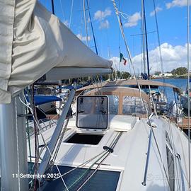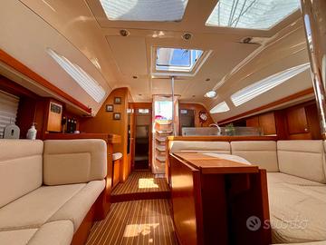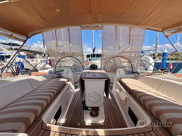 Layout con 4 cabine/2 bagni. Dotata di motore Volvo Penta D2-55 (trasmissione linea d'asse) con tagliandi annuali, randa full batten su carrelli Selden, avvolgifiocco Furlex (2025), generatore 4 kw, elica di Prua (2024), pannelli solari 2x100kw (2025), batterie 2+3 (2024+2023), serbatoi acqua tot. 850l, tender con motore fuoribordo Honda 2.3 (2024), radio VHF con certificato (2025), strumentazione completa (autopilota, tritata, Eco/Log, GPS plotter, stazione vento, stereo, bussola), Bimini completo di ombreggianti laterali, cancelletti laterali, pozzetto in teak, ampliamento spiaggetta poppa. Randa e genoa 2019 (condizioni discrete). Prese a mare sostituite 2020.