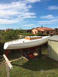 barca completamente restaurata, progetto EM7 di Ernesto Quaranta, modificata e prontissima a navigare, motore fuoribordo in pozzetto interno dedicato, ferramenta nuova inox, sartie nuove, timone in mogano e gelso lamellare, tuga in mogano, ancora e catena, vendo a prezzo basso perché devo liberare il giardino dove la tengo.