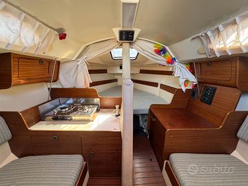 Cabinato a vela ETAP 22i, anno 1989, in ottime condizioni e pronta a salpare, molto apprezzata per sicurezza, qualità costruttiva e maneggiabilità. L’ETAP 22i è nota per la costruzione con controstampo e anima in schiuma espansa che rende la barca “insommergibile”, prevenendo al contempo la condensa, •Modello: ETAP 22i •Anno: 1989 •Motore: Yamaha 6 CV bicilindrico, integrato all’interno del pozzetto •Deriva sollevabile (pescaggio min 0,6 m, max 1,25m) Vele •Randa full batten, 2 mani di terzaroli •Genoa (2023) con rollafiocco •Randa e Genoa di rispetto •Gennaker •Tutte le manovre, incluse le borose, sono riportate in pozzetto facilitando anche la navigazione in solitaria Dotazioni e impianti •Luci di navigazione e luce di fonda a LED •Tridata AdvanSea (2024) •Stazione del vento Raymarine (2025) •bussola •Riscaldatore a gasolio (2023) ad aria canalizzata •Pannello solare •Pompa di sentina elettrica e manuale (2025) •Scaletta a poppa •Tendalino solare •Sprayhood •Tavolo a scomparsa con predisposizione sia in quadrato che in pozzetto •4 posti letto e 6 persone trasportabili Barca sempre manutenuta, con numerosi aggiornamenti recenti e dotazioni di valore. Interni ottimizzati, pozzetto comodo e fruibile. Adatta sia a velisti principianti sia ad esperti che cercano una barca affidabile e divertente.