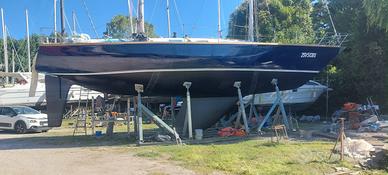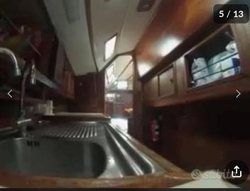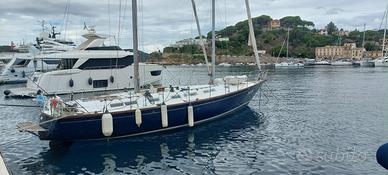 Goletta in vetroresina di 14,6 m x 4m, progetto Sciomachen con linee d'acqua veloci; 2 alberi con 2 genoa da 65mq l'uno, garantiscono una buona navigabilita' in sicurezza; possibilita' di aggiungere il boma sull'albero di mezzana. Una cabina matrimoniale a prua, ampia cabina matrimoniale in corridoio nel quale si trova anche un letto a castello con un bagno tra le due cabine; infine la dinette trasformabile in un'altra ampia cabina matrimoniale 3 posti con un altro bagno, fanno di questo 47 piedi un'ottima barca per la famiglia e volendo si presta bene anche al noleggio occasionale con in suoi 9 posti letto e due bagni. Ampia cucina nuova con grande frigo a pozzetto.