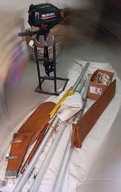 La barca è fornita di remi, scalmi, alberi, vele, timone, deriva, salvagente anulare, carrello di alaggio ed un telo copri barca.
