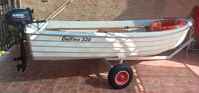 Vendo barca a vela Inaffondabile "Delfino 330 "della V.P. ADATTATA ANCHE PER LA PESCA Buone condizioni, sono state apportate due cassettiere ed un piccolo gavone a prua per essere attrezzata per la pesca. Motorizzata con motore Suzuki 4 tempi DF 2,5 usato meno di 10 ore, sempre rimessato con la relativa dichiarazione di potenza del Febbraio 2018.
