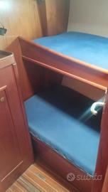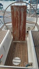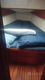 Anno: 1992 Lunghezza: 13.11 Larghezza:4.2 Pescaggio: 2.2 Motore: Yanmar 55 cv. Sbarcato e revisionato 2022 ( disponibile dettaglio lavori e pezzi sostituiti) Versione : 4 cabine 9 cuccette, due bagni. Pompe di sentina: 2 elettriche Autoclave Boiler : Con scambiatore di calore e 220 volts Cucina: Basculante 2 fuochi Frigoriferi: 2 Elettrici a pozzetto Pannelli solari: 3 360 w con regolatore Victron 100/30 Batterie: 3 x 100 Ah servizi; 1 120 Ah motore Carica batteria automatico a doppia uscita, 220 V . 30 A Carica batteria : charge to charge 30 A Battery monitor: Victron 700 Salpaancore : Lofrans 1200 con radiocomando e telecomando Catena:80 mt inox 10mm. Ancora: Delta 20 kg; VHF: Huricane A2E Randa: Full batten 35 mq 3 mani di terzaroli. con Lazy bag Rotaia con carelli Harken per la randa Genoa: 60 mq. Rollabile con avvolgifiocco Profurl Fiocco: 35 mq rollabile con avvolgifiocco Profurl Vang rigido Sprayhod Tendalino. Sartiame: rifatto nel 2012, strallo di prua 2020 Winches : 9 di cui 7 Seltealing Harken Pilota automatico: Raymarine ACU 400 con attuatore Autohelm Type 2 Stazione vento. ST 60 AIS con WIFI: Passivo Log scandaglio: Raymarine ST60 Inverter: Victron 1200 w Scaletta bagno Passerellla Barometo Igrometro Orologio Dotazioni di sicurezza: Zattera autogonfiabile Eurovinil 10 posti da revisionare, 7 giubotti autogonfabili, 2 giubotti, razzi scadenza 2026 Certificato di sicurezza: scadenza maggio 2030 visibile a Salerno Contatto: 0039 3472337848