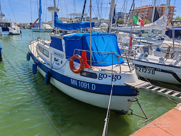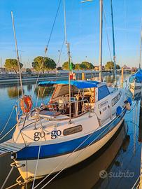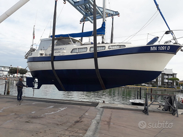 Barca per vacanze in sicurezza e comfort. Carena scandinava, chiglia lunga, murate alte, pozzetto ben protetto. Doppia timoneria per vela e motore. Lunghezza m. 10,70 larghezza m. 3,13 anno 1976.