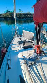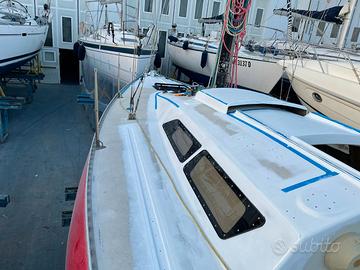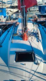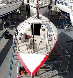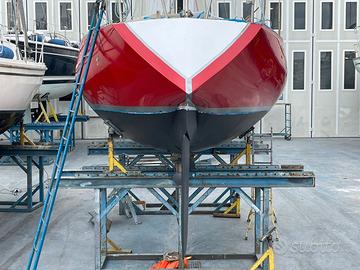 Half Ton Z-916 progetto Vallicelli-cantiere C.P.R. del 1978 9,16mt, baglio 3,02, pescaggio 1,674, dislocamento 3413kg -TOTALE refit 2022/23: opera viva, opera morta, coperta, interni, impianti elettrico e idraulico. Inoltre apportate importanti migliorie abitative per renderla fruibile anche in crociera. Aggiunta tre oblo' e un passauomo. Luci LED, prese USB, 5 posti letto, TV, Acqua dolce 300 lt, due pompe salata, due pompe sentina,doccetta interna e pozzetto, boiler, frigo, fornello, ventilatore. N. winch 6 (2 self tailing), salpa ancore con telecomando, 30mt catena Danforth+SB9 di rispetto, lazy bag, rollafiocco, tendalino, spiaggetta legno acciaio con scaletta sbarco e risalita, porta canne, impianto audio. Pannello solare 100W, due batterie 77Ah, Victron, magneto termico, cavo banchina. Motore Nanni 2.14 NUOVO (30 ore), elica tre pale + una a due di rispetto, serbatoio 32lt. Albero maggiorato, tangone, randa steccata, rollafiocco, tangone. Set vele aggiuntivo: due rande, genoa leggero, spinnaker, tormentina. Elettronica: chartplotter Garmin, ecoscandaglio, Log, autopilota ST1000, vento, bussola. Rigging nel 2024. Giugno 2025 sostituito prese a mare e fatto carena. Posto barca pagato fino a 30 giugno 2026. Tender Europa2000+Mariner 2,5hp. Visibile a Genova.