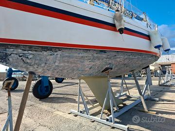 La barca è in cantiere per fare carena, bulbo già trattato e scafo gia levigato. Motore sbarcato, purtroppo da sostituire, eventualmente disponibile motore pari al nuovo da acquistare a parte, lombardini 25cv .