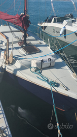 Neptun 22 La barca è carrellabile perché il fondo è quasi piatto e trasportabile grazie alla deriva mobile. È cmq presente peso in chiglia per maggiore stabilita, di circa 30% di capsize ratio. 7 metri di lunghezza, Molto stabile anche per il largo baglio. Dotata di rolla fiocco, motore fuoribordo 6 cavalli 4 tempi, come nuovo. Randa steccata, e molti altri opzionale. Attualmente in secca sull aurelia, vicino Roma.
