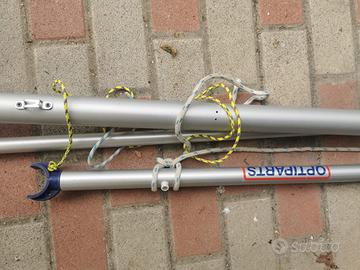 optimist, bellissimo, tenuto perfetto. origine olandese ma non ha targhetta, sempre stato sul lago trasimeno. (acqua dolce), completo di carrello alaggio. non ha bisogno di tubi per il galleggiamento come si vede in foto. carrello copribarca, vele in ottimo stato